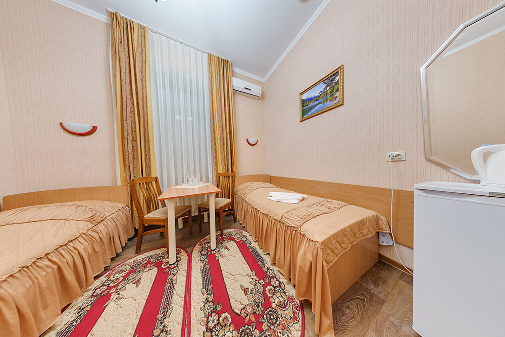 В каждом номере есть холодильник, чайник, комплект посуды, телевизор, зеркало, шкаф для одежды, тумбочки. Также все номера оснащены кондиционерами, банными принадлежности. Для номеров категории «Четырёхместный двухкомнатный» предусмотрен один санузел на две комнаты. Во всех остальных вариантах размещения санузлы расположены в каждом отдельном номере. Везде установлена современная сантехника, а «Люкс» 1-ой категории оборудован ещё и джакузи.